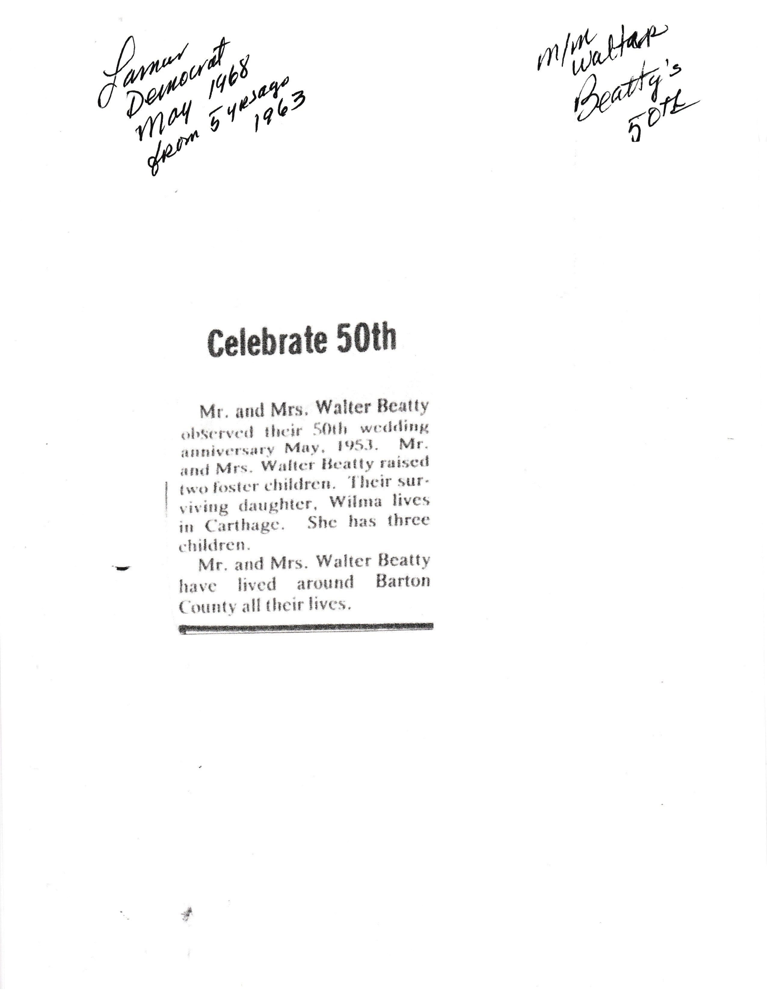 Beatty's, Walter 50th