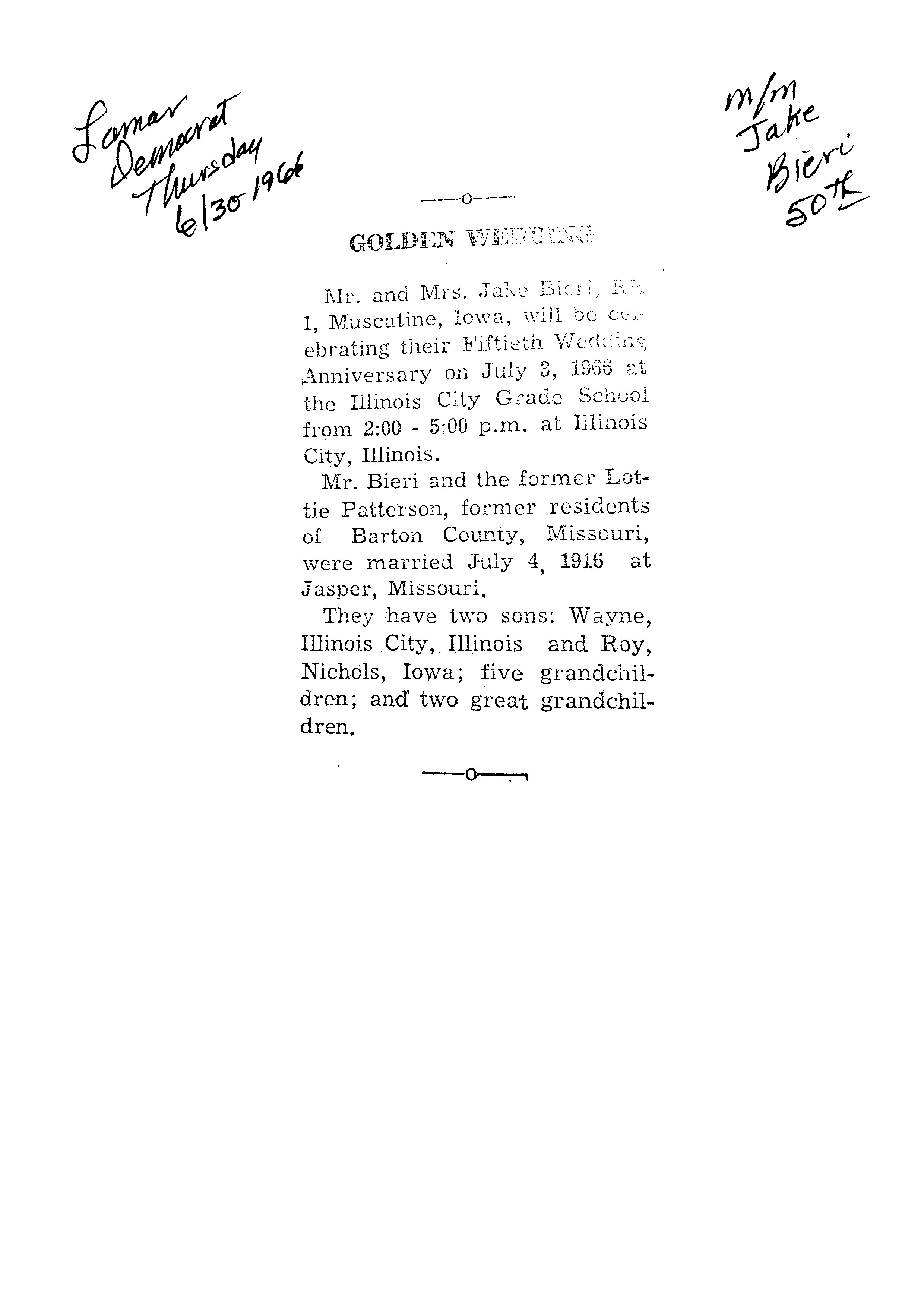 Bieri's, Jake 50th