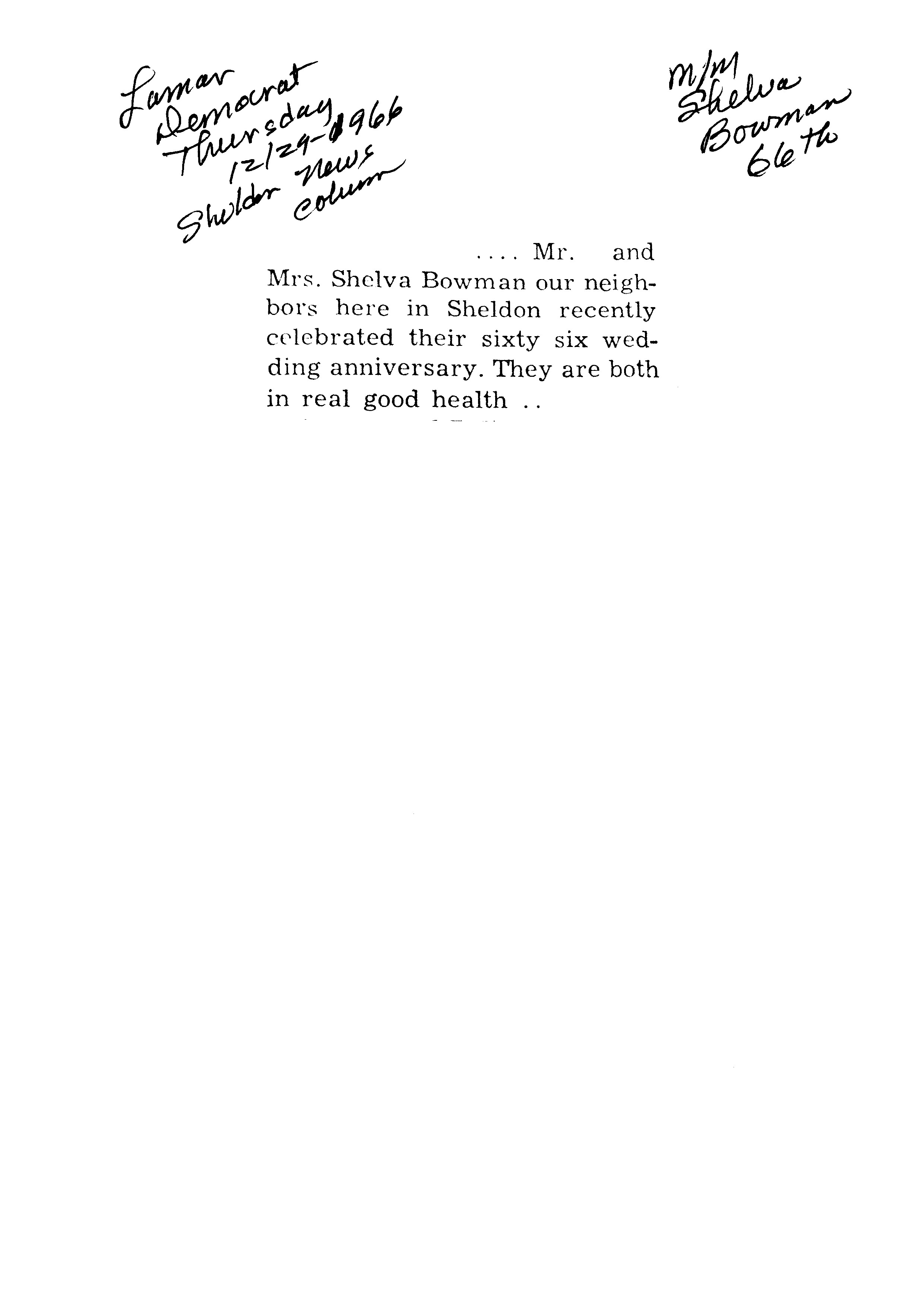 Bowman's, Shelva 66th