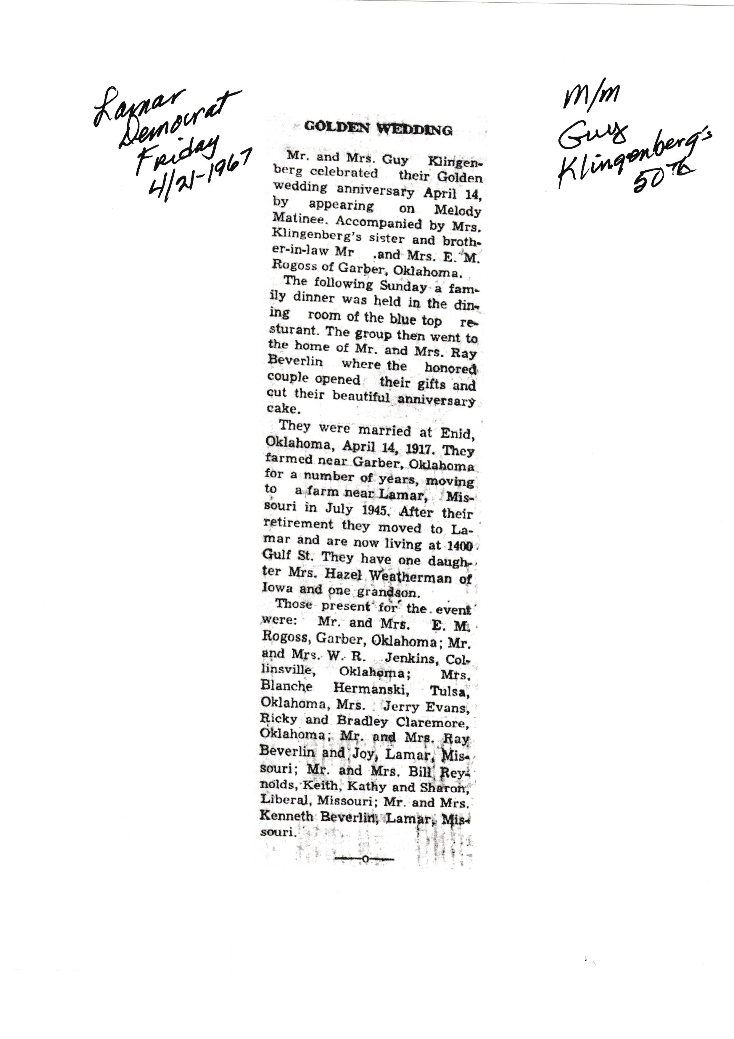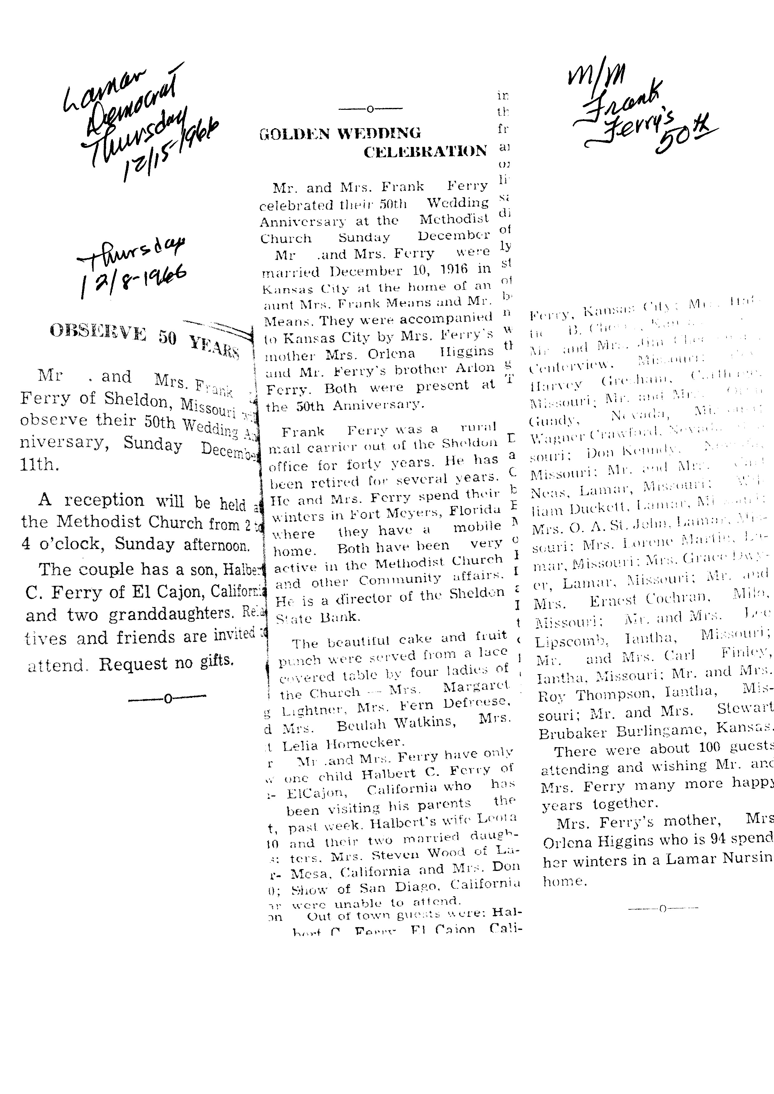 Ayers, Elmer 50th