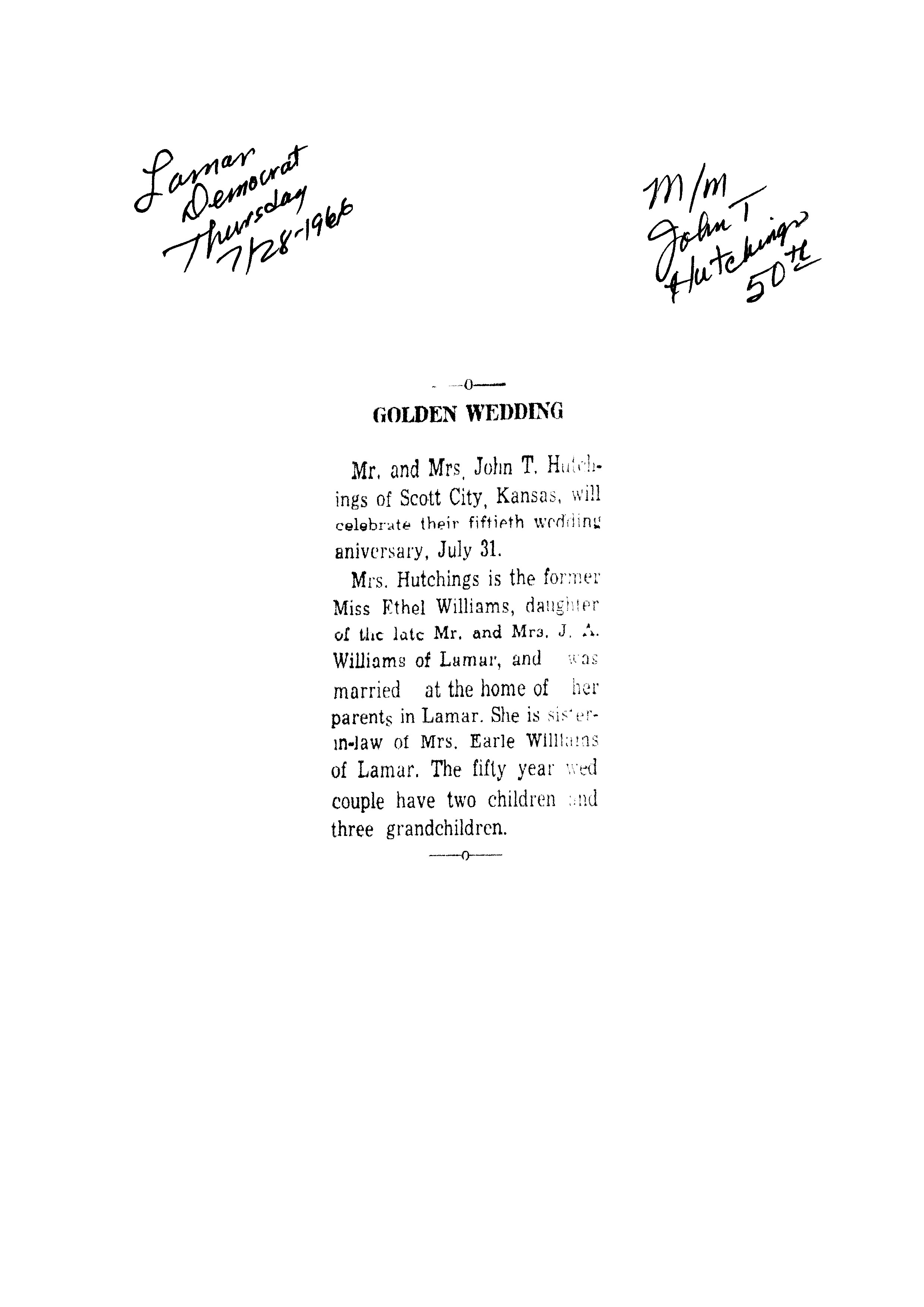 Williams, Levi 50th