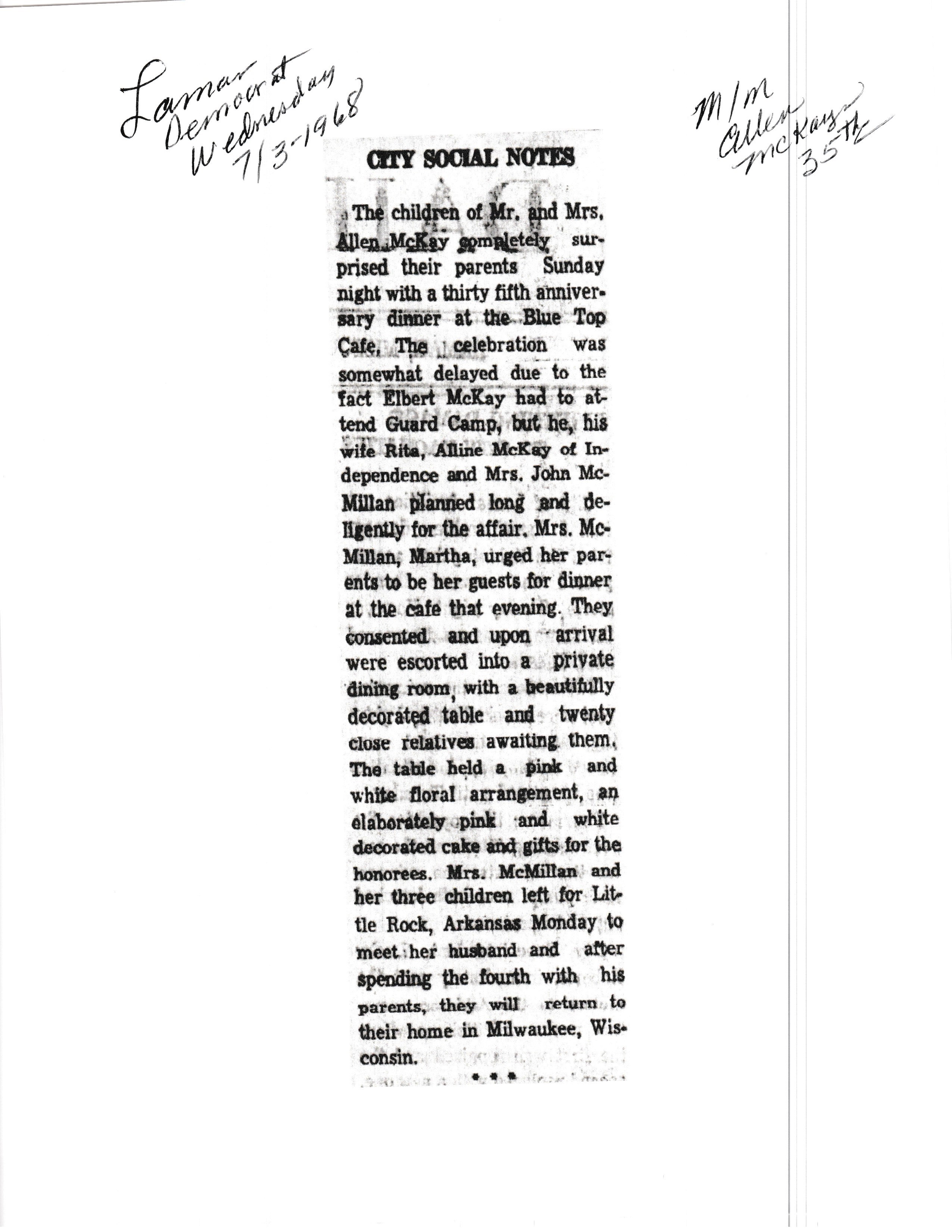 Bass's, Ora & Thelma 40th
