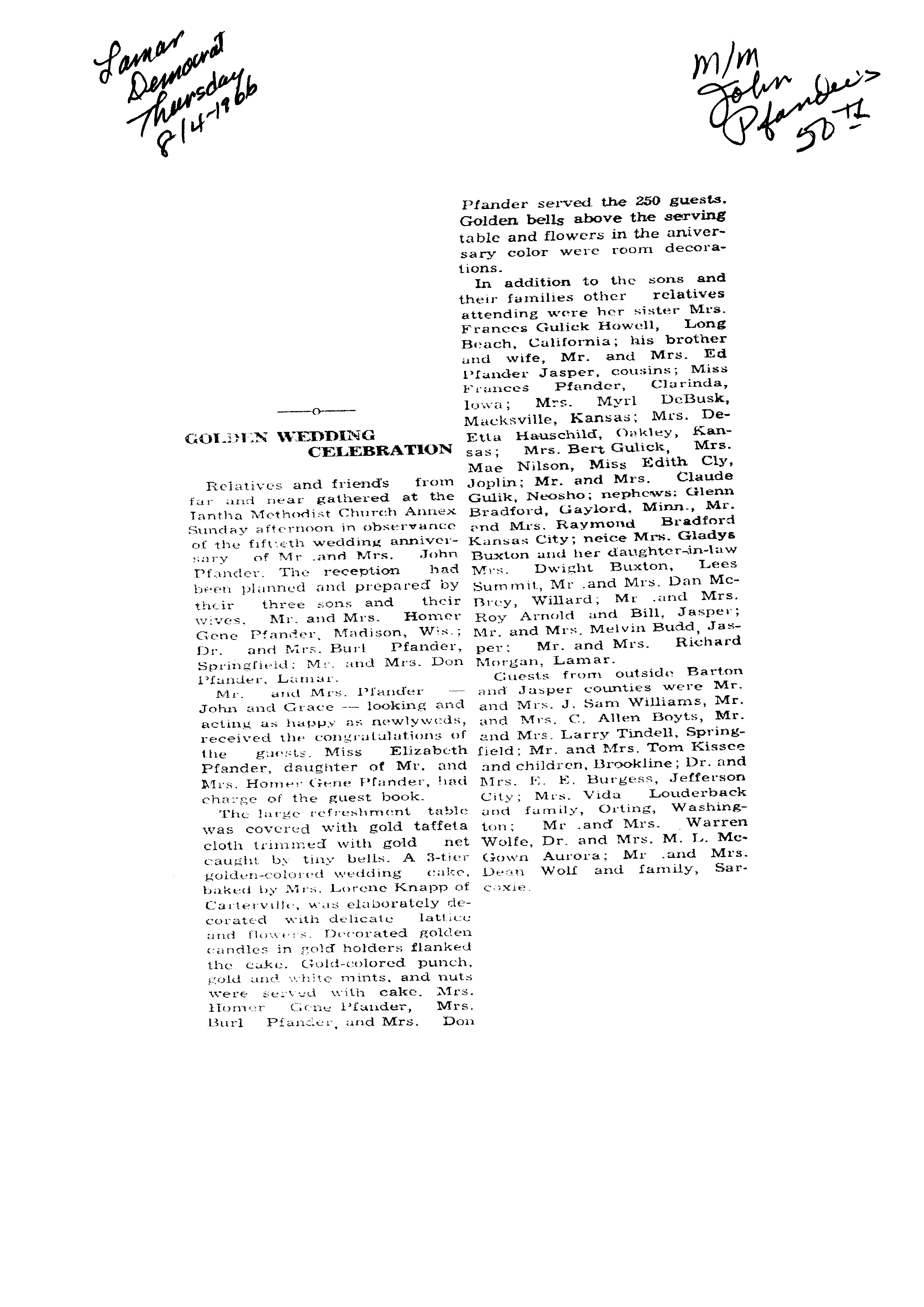 Banwart's, Gene 50th