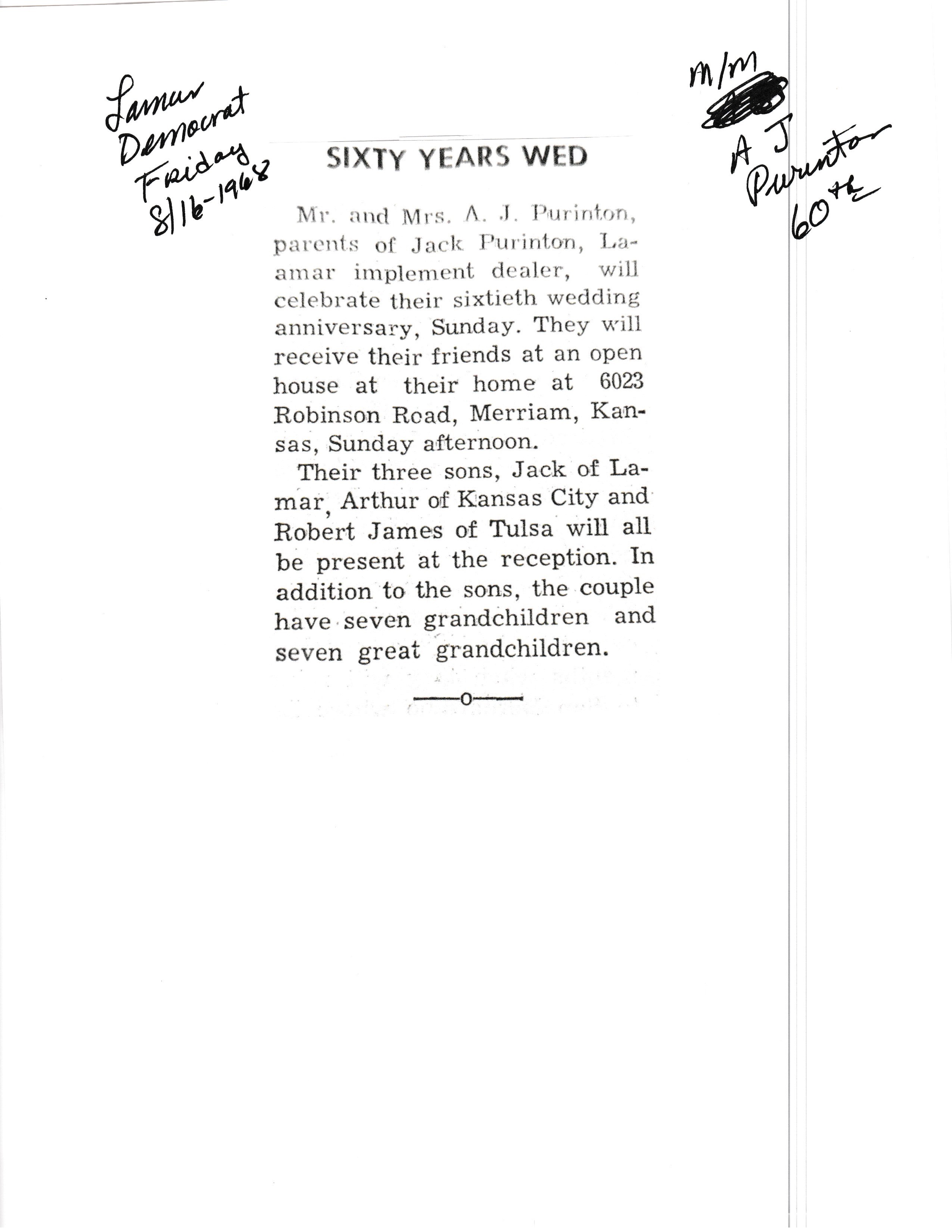 Wasson's, Arthur 60th