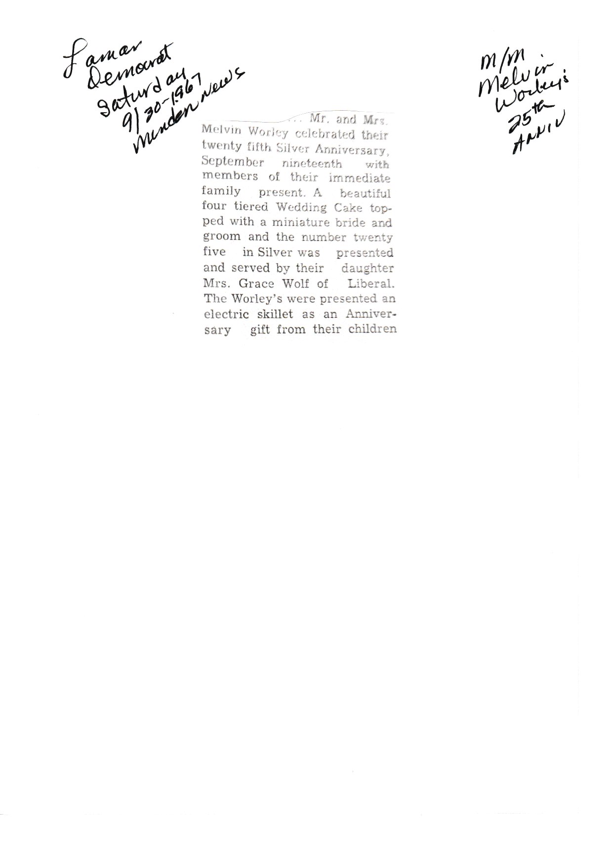 Worley's, Melvin 25th