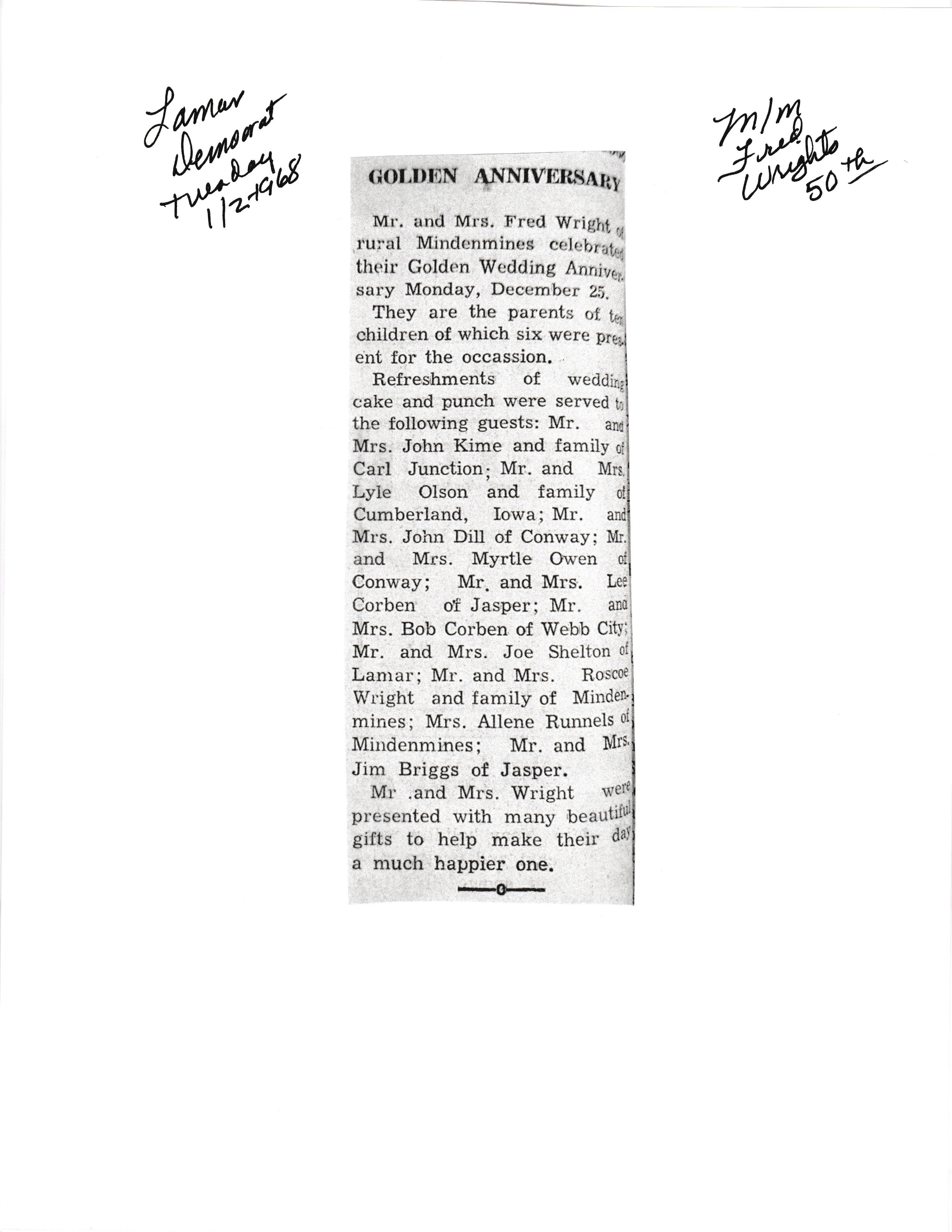 Wright's, Fred 50th